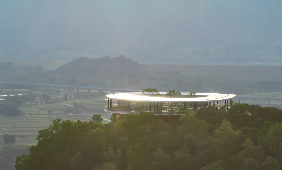 設(shè)計(jì)充分考慮柴山的整體環(huán)境,以輕介入手法設(shè)計(jì)了一枚“輕巧的指環(huán)”,輕輕嵌入山體,融入自然??茖W(xué)頂環(huán)廊周長(zhǎng)156.1米,與光明區(qū)面積156.1萬(wàn)平米一致,預(yù)示著光明的科學(xué)猶如啟明星一樣照亮整個(gè)片區(qū)。